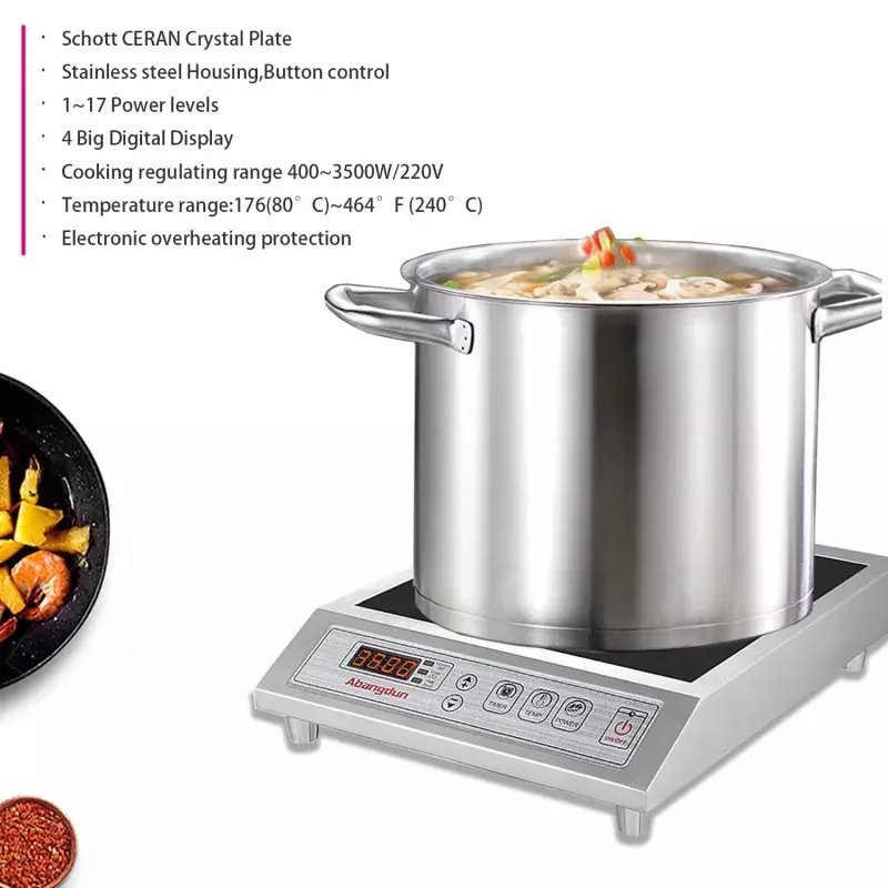 16×13×3-inch Commercial Induction Cooker 400–3500W | Stainless Steel, Button Control | Customizable Power | OEM/ODM Service