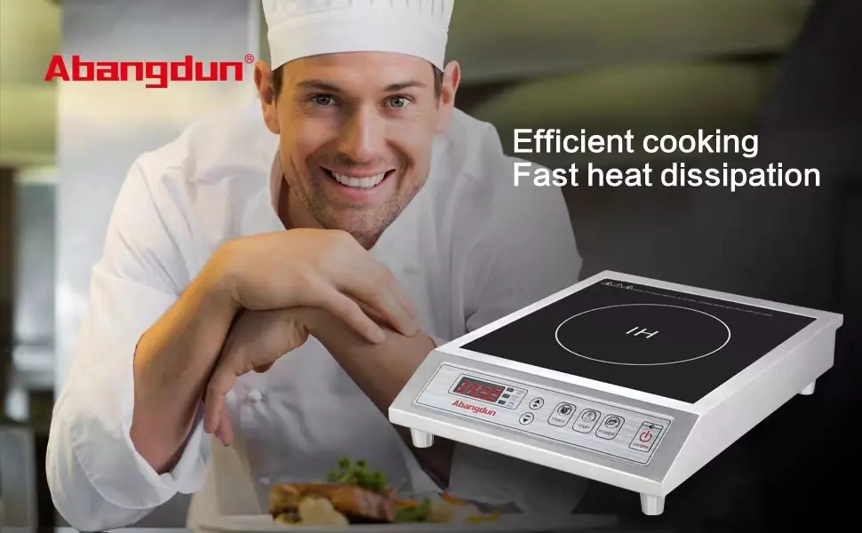 【DURABLE & EASY TO CLEAN】:Commercial Hot Plate with thickened stainless steel construction and large cylindrical legs ensure durability and load-bearing capacity. Equipped with two fans and back air ducts for quick heat dissipation. With no open flame or heating elements, food will not burn on the glass cooktop, so it is easy to clean, just wipe with a damp towel.