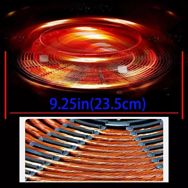 【AVTUAL HEAT GENERATING AREA】11 inch Schott ceramic glass surface is 1~2mm structure below the stainless steel housing. The new design effectively prevents extra heavy pots from directly touching the ceramic glass panel causing the panel to break. The effective heating area depends on the diameter of the heating coil, the diameter of the coil is 9.25 inches for a large heating area. Slightly raised button controls make it easier to control.