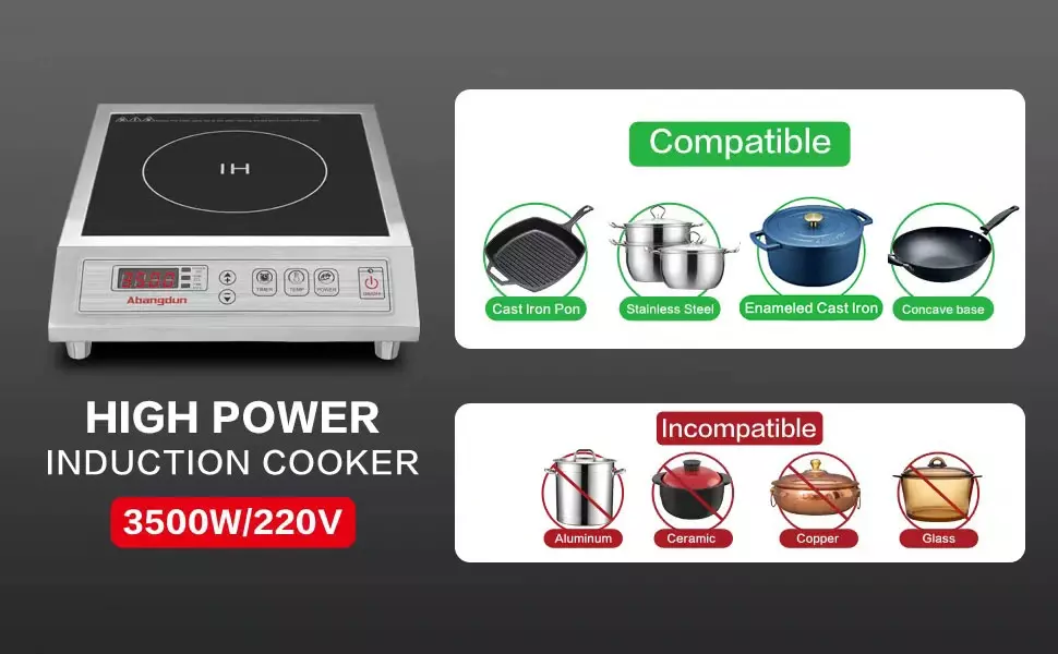 【FAST AND SAFE COOKING】:This commercial induction cooktop has passed FCC certification.It with max 3500W(240V/15A), The induction hot plate is equipped with the second generation of upgraded technology, which has both a full power stage for fast heating and a low power stage for keeping warm.high rate heats faster than a normal electric burner, hot plate, oven or a cooktop stove.When the temperature is overheating or the pan is off the surface, the induction burner will stop working.