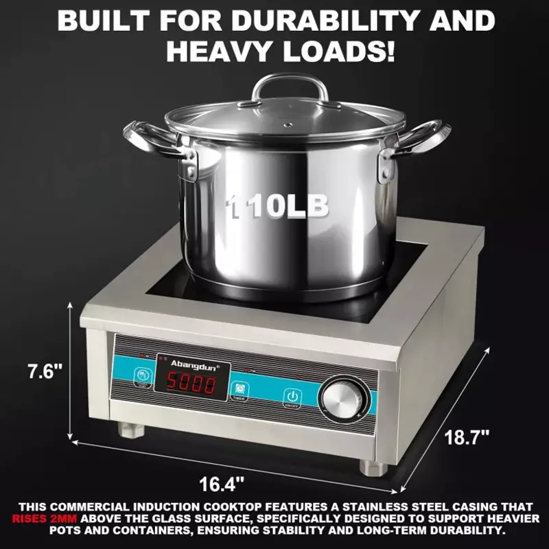 19×17×8-inch Commercial Induction Cooker 400–5000W | Stainless Steel, Button & Knob Control | Customizable Power | OEM/ODM Service