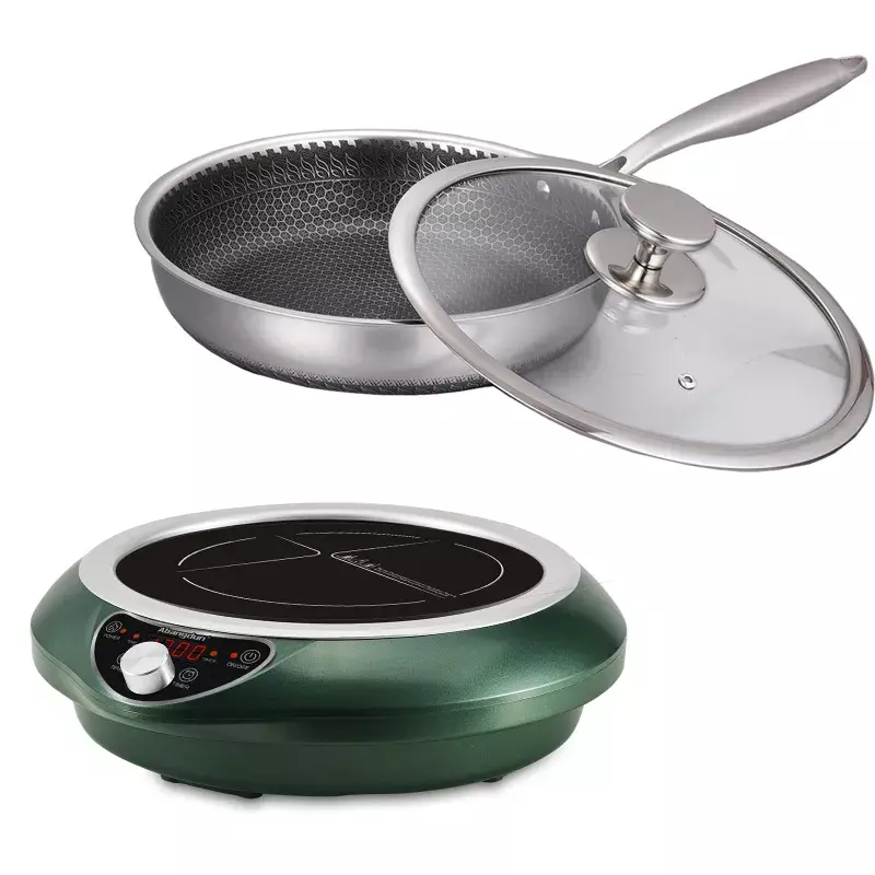 This review is for the 12 inch fry pan only, which the listing was originally for, not a fry pan plus induction hot plate. I cooked on it almost every day for two weeks to write an honest review and my family ate pretty well in my quest for accuracy.