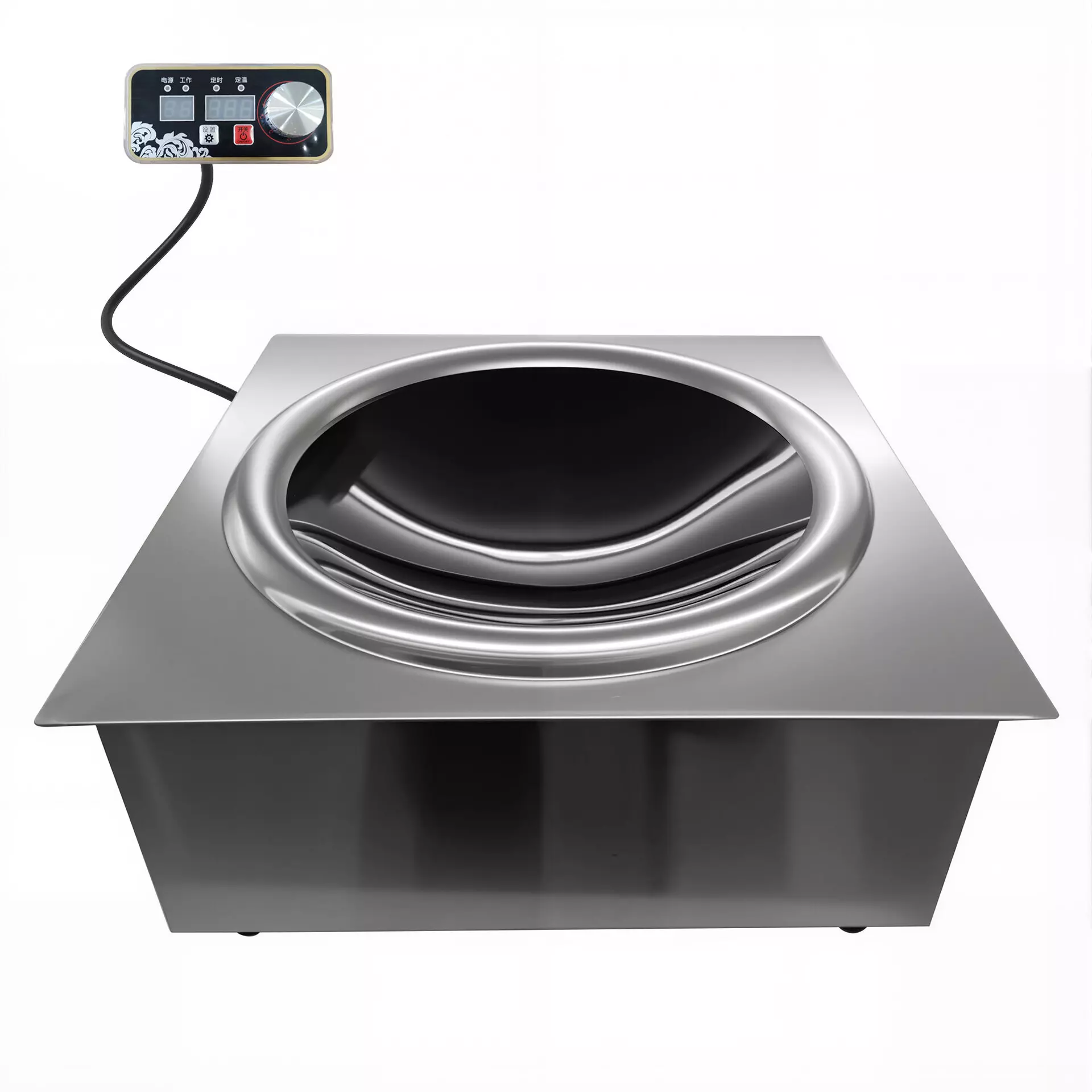3500W – 5000W Commercial Concave Induction Cooker | Stainless Steel, Knob Control, 16×16×7-inch | Customizable Power | OEM/ODM Supported