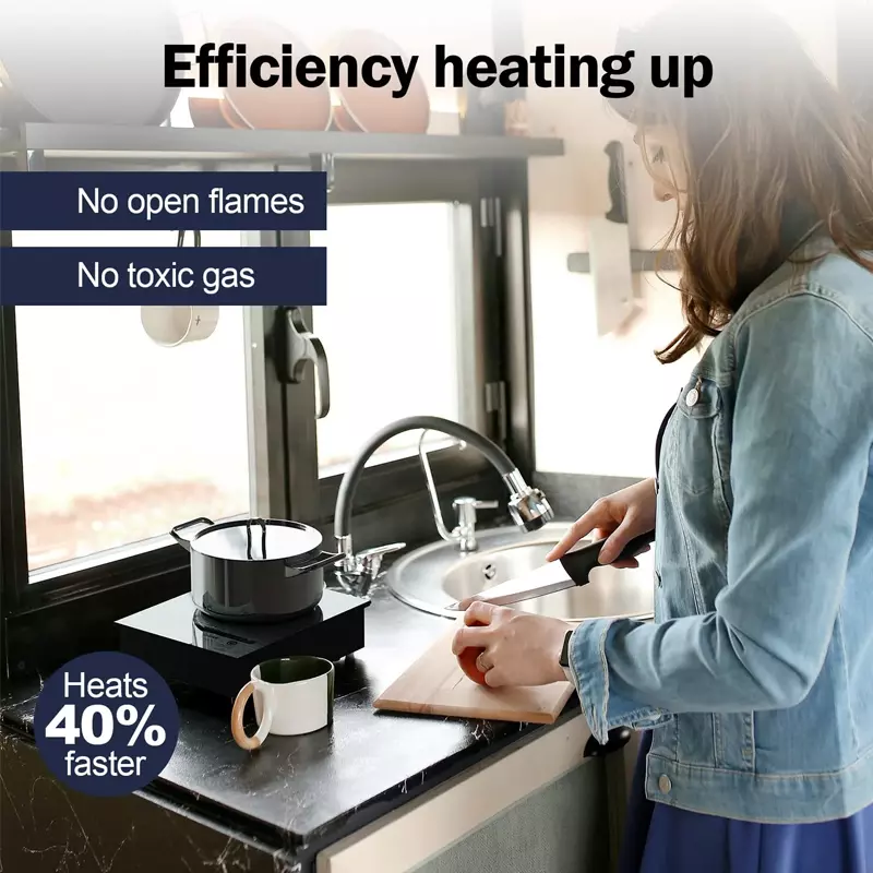 【DURABLE & EASY TO CLEAN】The mini induction hot plate is beautifully designed. 5" double-layer coils provide even heating and low temperatures in the oven, greatly increasing the service life. Since there is no open flame and no heating element, food will not burn on the glass cooktop, so it is easy to clean, just wipe it with a wet towel